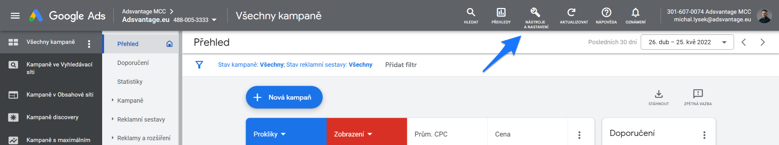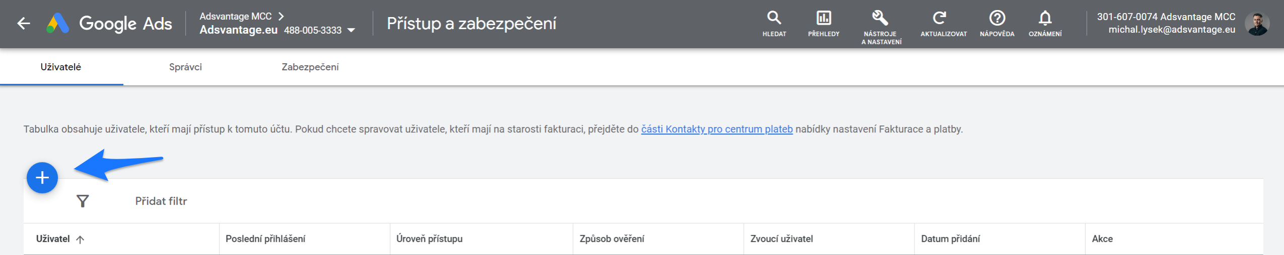 Nyní začneme tím nejdůležitějším přístupem - do Google Ads.